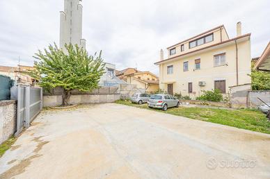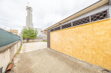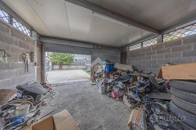 All'esterno si sviluppa una corte privata di circa 300 mq, completamente recintata e servita da un ampio accesso carrabile che consente l'ingresso di mezzi e veicoli da lavoro. Lo spazio esterno, pianeggiante e ben distribuito, si presta perfettamente come area di manovra, parcheggio o deposito all'aperto.