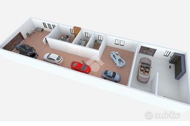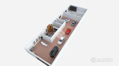 L'immobile è suddiviso in due grandi vani, oltre ad una stanza ad uso ufficio e ad un bagno finestrato con antibagno.