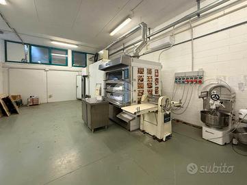 A completare questa seconda soluzione è presente tutta l'attrezzatura utile a svolgere l'attività. L'inventario comprende cinque tavoli da lavoro, una canna fumaria, una friggitrice, due forni di piccole dimensioni e un forno grande. È presente un piano cottura a induzione, due lavandini, dieci teglie per forno, una cella frigorifera, una cella combinata metà freezer e metà frigo, e un freezer a due ante. Completano l'attrezzatura un'impastatrice, una macchina per il sottovuoto, una macchina per spianare la pizza e una per formare pizze rotonde. Sono inoltre disponibili tre frigoriferi tipo 'vetrina' per dolci, un banco frigo per le bibite, un lavabicchieri, due mobili da lavoro, un abbattitore e scaffali in legno utilizzati per l'appoggio delle merci.
