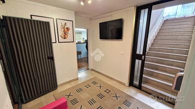 magazzino con ufficio al piano seminterrato con accesso indipendente e secondo ingresso da scala condominiale, di c. ca 220 mq composto da ingresso, più vani eventualmente unibili in un ampio open space, ripostigli e doppi servizi igienici.