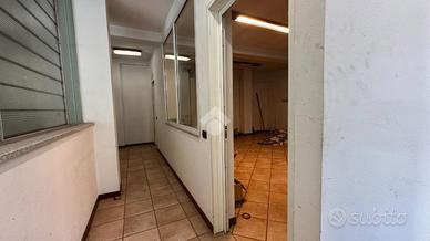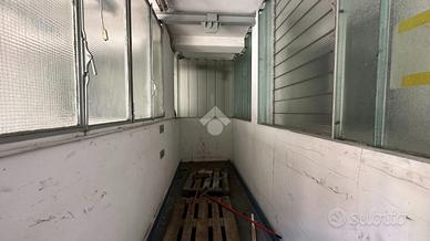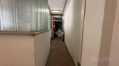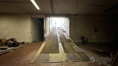 Una rampa ed un montacarichi conducono al piano seminterrato formato da tre uffucu ed un'ampia area che era adibita a officina.