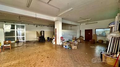 Il locale copre specularmente la metratura dei tre locali al piano superiore (anch'essi in vendita), è composto da un locale di sgombero molto ampio che è servito da 2 spogliatoi e 2 bagni ed infine un laboratorio con disimpegno e ufficio.
