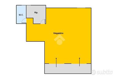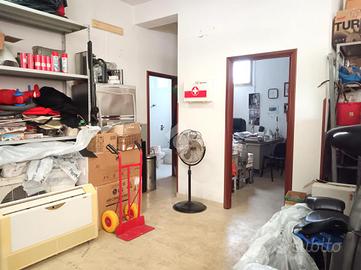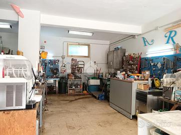 Esso è composto da ambiente unico oltre bagno con antibagno ed ampio riposto utilizzabile come ufficio. Davanti alle due saracinesche c'è uno spiazzo che è possibile utilizzare per posteggiare delle autovetture.