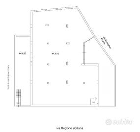 In zona quadrivio proponiamo magazzino uso deposito di ampia metratura, composto da un grande unico vano oltre wc. L'immobile è dotato di un ingresso carrabile ed uno pedonale, si accede al magazzino da una rampa carrabile direttamente dalla Via Regione Siciliana.