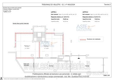 Vendita all'asta Senza incanto, con gara telematica asincrona - LOTTO 1: Locale magazzino ubicato in Albano Laziale (RM) Via l'Aquila n. 23/E, interno 8, posto al piano S1 dell'edificio (categoria catastale C/2), superficie catastale totale 78 mq. L'unità immobiliare risulta attualmente priva dei muri divisori e necessita di opere di completamento al fine di renderla idonea all'utilizzo previsto. Prezzo base € 59.000,00 (offerta minima € 44.250,00). Data inizio operazioni di vendita: 16/04/2026 ore 15:00.