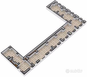 Internamente si compone di 13 vani comunicanti, oltre servizio, con una distribuzione degli spazi versatile e facilmente adattabile a diverse esigenze operative.