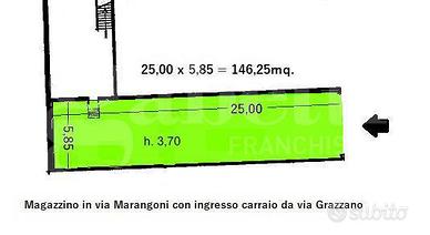 Grande autorimessa - deposito di circa 146 mq. posta al piano interrato del condominio Messaggerie, immobile posizionato tra via Marangoni e via Grazzano.