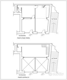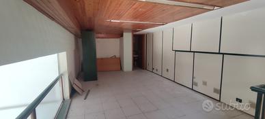118 mq superficie catastale, 100 mq superficie utile (67mq piano terra + 33 mq soppalco) con 2 bagni uno al piano terra ed uno nel soppalco; 2 saracinesche (larghezza 2,40m) su strada. Possibilità di essere diviso in 2 unità.