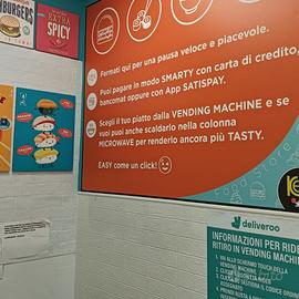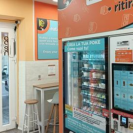 Zona vendita al dettaglio con con sistema automatizzato con 7 coperti per consumare sul posto.