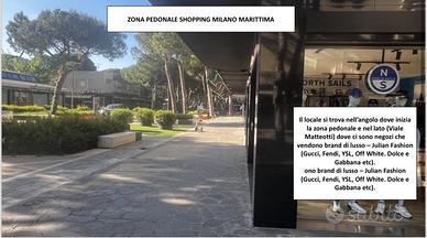 Milano Marittima in centro, all'ingresso della zona pedonale in viale Gramsci 39 affitto negozio di 100mq con 5 vetrine ad angolo. Area esterna di 300mq ad uso esclusivo per attivita' di bar/ristorante. Il locale e' provvisto di tutti gli impianti, parqueat, infissi nuovi ed e' quindi pronto all'uso.
