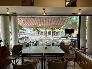 Il locale si presenta in ottimo stato, completo di arredi curati e attrezzature recenti, con posti a sedere sia interni che esterni. Il plateatico esterno, attrezzato con tenda da sole e tavolini, rappresenta un valore aggiunto, ideale per accogliere la clientela durante la bella stagione.