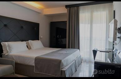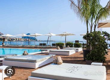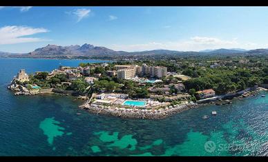 Suite in comproprietà alberghiera Domina Zagarella in località Santa Flavia, sulla costa della Sicilia tra Palermo e Cefalù, con disponibilità nella prima settimana di luglio (codice 26). Situata al 5^ e ultimo piano, in una struttura esclusiva e pluripremiatimmersa in un giardino mediterraneo di 28mila mq. a picco sul mare con splendida vista sul Golfo di Porticello, la suite - due posti letto, bagno e terrazzina - è dotata di aria condizionata, TV, cassaforte, frigobar, wi-fi ed è in vendita al prezzo molto competitivo di 11mila euro. Nell'hotel ci sono tre ristoranti con scontistica speciale per i multiproprietari, due pool bar, un Beach Luxury Club, spazio d'eccellenza e relax, a bordo piscina, con lettini e ombrelloni deluxe, per pranzi in riva al mare e apertivi con dj set dal mattino a notte fonda. Inoltre due piscine, di cui una con acqua di mare e una baby, una spiaggia privata dotata di sdraio e ombrelloni con scalette di accesso al mare, due campi padel, palestra, Spa, Mini club per bambini, centro diving, parcheggio privato custodito, parafarmacia e presidio medico. A luglio e per tutto il periodo estivo la struttura ospita quotidianamente eventi artistici, spettacoli, cene all'aperto, e servizi di animazione gratuiti per gli ospiti. Non sono richieste spese condominiali e, solo per usufruire della suite nel periodo indicato, si pagano circa 450 € per i servizi alberghieri quotidiani (pulizia, rifacimento camera, cambio biancheria, rifornimento minibar ecc.) dell'intera settimana. Nessun pagamento nè spese per la manutenzione vengono richiesti se non si utilizza la suite. Il periodo posseduto si può scambiare con altre settimane nella stessa struttura o altre strutture del circuito Domina, in Italia e all'estero. L'acquisto dà diritto all'accesso al D Club, formula che offre ai membri vacanze ricche di esperienze di viaggio personalizzate. Il passaggio di proprietà avviene presso Domina.
