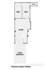 Il locale è dotato di bagno e corte esterna privata con portico, uno spazio tranquillo e riservato che può essere sfruttato come area di servizio, punto di appoggio o semplice estensione dell'ambiente lavorativo.