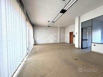 ALBA- In Via Duccio Galimberti, una traversa di Corso Langhe, a pochi passi da Piazza Cristo Re, immobile disposto su due livelli con piazzale adatto a parcheggio privato nel cuore di Alba. La soluzione prevede un locale commerciale al piano terreno di circa 100 metri quadrati con annesso retro e servizi. Tramite una scala interna e tramite rampa esterna condominiale è consentito l'accesso pedonale e carraio al piano sottostante adibito a magazzino/laboratorio di circa 535 metri quadrati con annessi servizi e centrale termica autonoma. La presenza di vetrate al piano seminterrato conferisce luminosità all'ambiente. La presenza del montacarichi conferisce versatilità all'immobile. A parte la possibilità di acquistare autorimessa attigua al seminterrato.