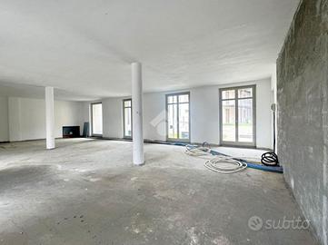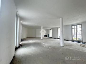 ALBA- A pochi passi da Piazza Risorgimento, nel cuore di Alba, immobile disposto su due livelli di recente costruzione. La soluzione possiede accesso e doppie vetrine sia fronte strada che internamente al cortile condominiale. La proprietà prevede una zona al piano terreno di circa 130 metri quadrati ed un secondo locale di circa 90 metri quadrati al piano seminterrato a cui si accede tramite un ascensore condominiale. La proposta risulta in fase di costruzione e necessita di finiture e completamento a seconda delle proprie esigenze. Infine a rendere vantaggioso l'immobile, la posizione strategica e la comodità di posteggio.