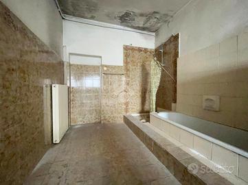 - Piano primo: Abitazione da ristrutturare su due livelli, con accesso diretto dal bar, caratterizzata da tre camere da letto, cucina abitabile, bagno finestrato con vasca, ripostiglio e soffitta allo stato grezzo, con possibilità di recupero e personalizzazione
