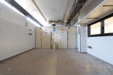All' interno del locale sono presenti tre celle frigorifere in locali piastrellati idonei per l'area alimentare, un montacarichi, spogliatoi e bagni maschio/femmina oltre a un soppalco di 150 mq in parte attualmente adibito a locale tecnico.