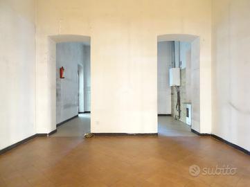 L'immobile è composto da tre locali tutti comunicanti tra loro per una metratura complessiva di circa 100 mq ed è fornito di due bagni. Sono presenti due accessi pedonali fronte strada ed è consentito il carico/scarico nel cortile condominiale. Il riscaldamento è autonomo e le spese condominiali contenute.
