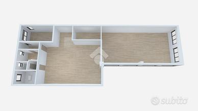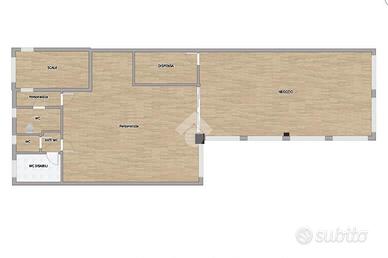 - Composizione: 2 locali, 3 servizi igienici, spogliatoio, cucina