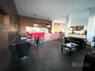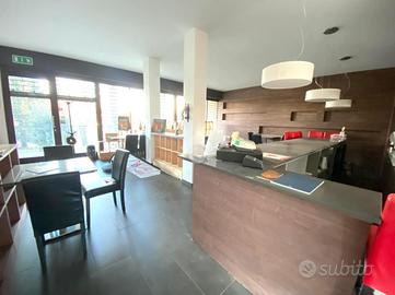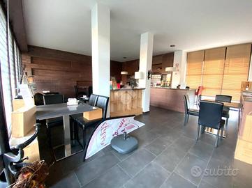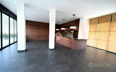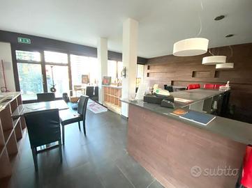 Al piano terra l'immobile si presenta con un ampio open space d'ingresso, doppi servizi e doppio accesso, sia frontale che sul retro.