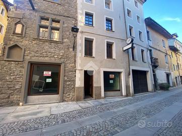 Aosta-Via Martinet-Nella zona pedonale di Aosta, in prossimità di Piazza Roncas e dell'ospedale Umberto Parini, negozio al piano terra con due vetrine sulla via pedonale che donano una buona visibilità agli spazi interni.