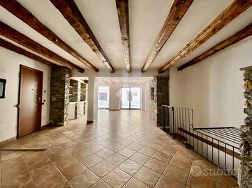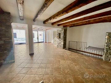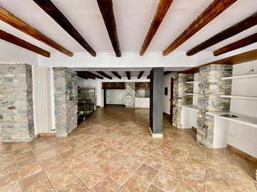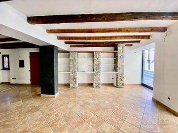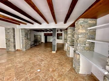 L'immobile si sviluppa su due livelli con un ingresso su un ampio vano open space di circa 93,00 mq caratterizzato da una parete con pietre a vista e travi in legno a vista sul soffitto ed un servizio igienico. Al piano interrato vi è un deposito di circa 49,00 mq collegato al negozio da una scala intera.