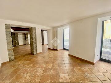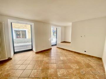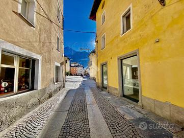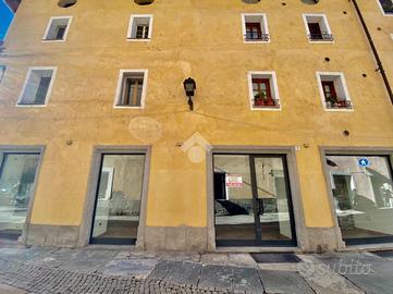Aosta, via Martinet. Nella zona pedonale di Aosta ed in prossimità di Piazza Roncas e dell'ospedale Umberto Parini, negozio al piano terra con quattro vetrine sulla via pedonale che donano una buona visibilità agli spazi interni.