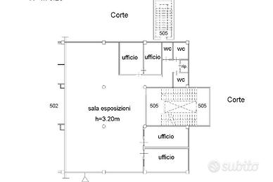 Locale commerciale attualmente diviso in 4 ambienti con antibagno e tre servizi, annesso piccolo ripostiglio.