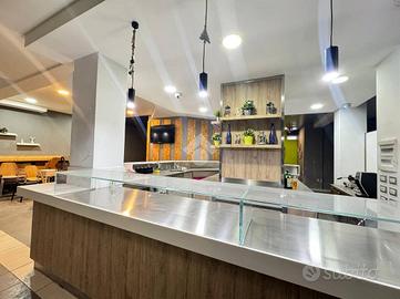 Proponiamo in affitto esclusivo un ampio locale commerciale già attrezzato, pronto per l'avvio immediato di un'attività di bar, pub, ristorante o lounge. L'immobile si sviluppa su due livelli, con accesso al piano terra per la clientela e da passo carrabile al piano seminterrato, per un totale di oltre 500 mq. Piano Terra - 115 mq Ingresso accogliente con banco bar e macchinari completi, servizi igienici a norma e prima cucina con montacarichi collegato al bancone del piano inferiore. Piano S1 - 400 mq, collegato da scala interna, composto da: Sala privata, grande sala centrale con banco bar, saletta riservata vetrata con tavoli da biliardo, seconda cucina attrezzata e zona deposito accessibile dal passo carrabile, ideale per carico/scarico merci. Locale funzionante e arredato, con attrezzature in ottime condizioni, con cauzione a garanzia dell'usura dei macchinari, e impianti operativi. Adatto per pub, birreria, ristorante, pizzeria o cocktail bar, ma convertibile per altre attività commerciali. Possibilità di consegna libera da arredi e attrezzature, con adeguamento del canone di locazione.