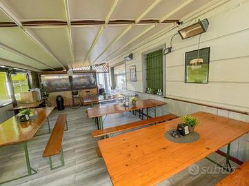 La struttura è munita dell'impianto di riscaldamento, dell'impianto elettrico, dell'impianto di illuminazione e dell'impianto di allarme. L'immobile è dotato di canna fumaria, ventilazione meccanica e della aspirazione fumi. È inoltre cablato e possiede l'impianto della tv via cavo e sound. Sono presenti 30 metri quadrati di dehor con circa 40 posti a sedere. Al piano seminterrato, accessibile tramite scale interne, troviamo 20 metri quadrati di deposito con impianto di spillatrice.
