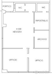 L'ambiente è suddiviso in un ampia sala d'ingresso, tre salette ed i locali di servizio e servizi igienici. La superficie è di mq 135 mq.