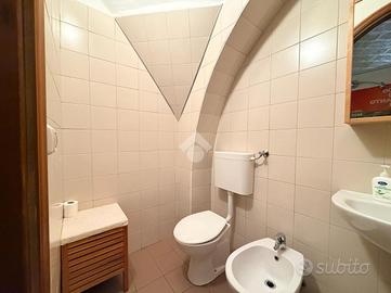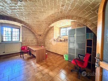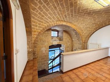 L'ambiente si presenta con grande carattere e personalità: le pareti in conci di pietra, gli archi a botte e le volte in muratura creano un'atmosfera calda e prestigiosa, mentre la pavimentazione in cotto e l'illuminazione contemporanea conferiscono equilibrio e comfort visivo. Una scala a giorno in ferro e legno collega i due livelli, valorizzando la verticalità e l'ampiezza dello spazio. Le porte centinate, con sommità ad arco, e le finestre con infissi in alluminio e vetrocamera, dotate di inferriate in ferro battuto a disegno romboidale, aggiungono un ulteriore tocco di pregio e solidità all'intero immobile.