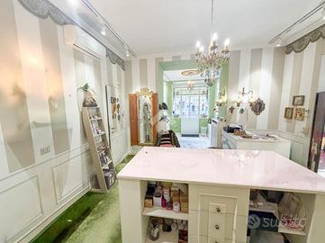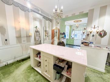 Il negozio misura circa 60 metri quadrati, attualmente è suddiviso in due locali e presenta un servizio igienico non a norma disabili. La struttura ha un'altezza di circa 3,0 metri, ed è caratterizzata da una pavimentazione in piastrelle e una parte in moquette. L'immobile, controsoffittato, presenta l'impianto di riscaldamento e condizionamento, l'impianto elettrico e l'impianto d'illuminazione. La struttura è molto luminosa grazie alla presenza di cinque ampie vetrine e alla sua posizione ad angolo.