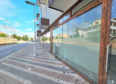 L'immobile si presenta nuovo e completamente ristrutturato ed è dotato di un'ampia vetrina visibile lungo il corso. Il suo interno di 84 mq è composto da un unico ambiente dedicato alla vendita al dettaglio, più bagno e antibagno.