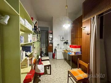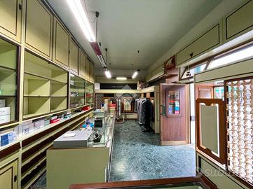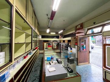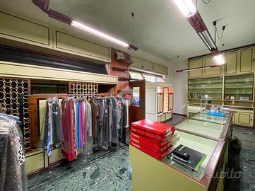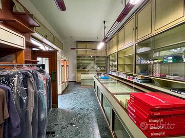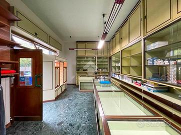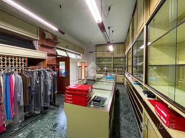La soluzione misura circa 50 metri quadrati ed è composta da due locali. Nel cortile comune è presente un servizio igienico e completa la proprietà una cantina di circa 10 metri quadrati situata al piano primo seminterrato. L'ambiente risulta particolarmente luminoso grazie alla presenza di tre ampie vetrine che affacciano su una pubblica via. Il negozio è dotato di impianto elettrico, impianto di illuminazione e impianto di riscaldamento centralizzato. Le saracinesche a protezione delle vetrine frontali sono automatiche.