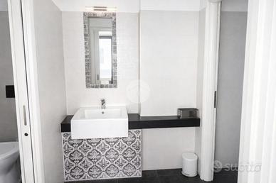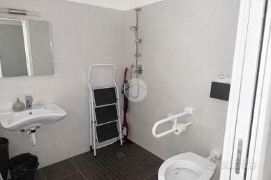 Due bagni, di cui uno già predisposto per disabili, garantiscono comodità e comfort per clientela e personale.