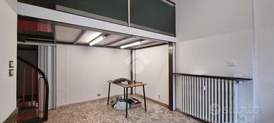 Adiacenze Via Guglielmo Marconi - Negozio con vetrina con accesso dal portico, ad uso ufficio. Ingresso su ambiente in open space, retro con bagno ristrutturato. Una scala a chiocciola porta al soppalco di 10 mq. Riscaldamento centralizzato con contacalorie. Locale imbiancato, saracinesca eletrifficata . LIbero da subito . Rif. 1964