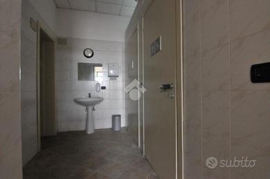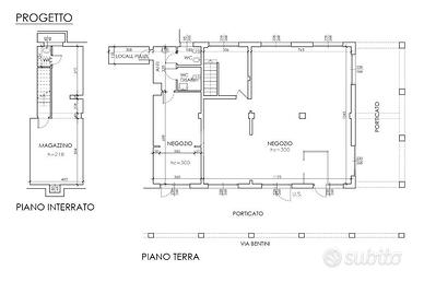 L'immobile si sviluppa su due livelli ed è dotato complessivamente di tre bagni, di cui uno a norma per disabili, con servizi presenti sia al piano terra sia al piano seminterrato. Le altezze interne raggiungono i 4 metri, con controsoffitto a 3 metri. Sono già presenti gli impianti elettrico e di illuminazione, oltre al riscaldamento e al condizionamento autonomi. Il negozio offre la possibilità di essere suddiviso in più unità: una porzione di circa 30 mq calpestabili al piano terra con due bagni e una vetrina, oppure una porzione di circa 120 mq calpestabili al piano terra con ulteriori 35 mq di piano interrato, un bagno e otto vetrine. La conformazione e l'ampio fronte vetrato lo rendono adatto a diverse tipologie di attività commerciali e di servizio.