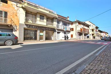 Negozio di 60 mq con vetrine + appartamento su due livelli con terrazzi in vendita - centro Borgo d'Ale (VC)