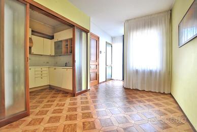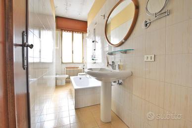 - appartamento: l'alloggio, sviluppato al primo e al secondo piano, occupa una superficie di 110 metri quadrati circa. La scala interna, che si sviluppa accanto al negozio, conduce all'ingresso dell'abitazione: quest'ultima si apre su un ampio e luminoso disimpegno che collega tutte le stanze abitative. La cucina, separata da eleganti porte scorrevoli in vetro con cornice in legno, è compatta e funzionale, mentre il soggiorno è situato in una stanza dedicata. Il piano ospita ancora la prima delle due camere da letto: questa è pavimentata in parquet e, assieme al soggiorno, condivide l'accesso a un balcone affacciato sulla strada. Il bagno del piano è dotato di vasca. Infine, il primo dei tre terrazzi offre uno sp