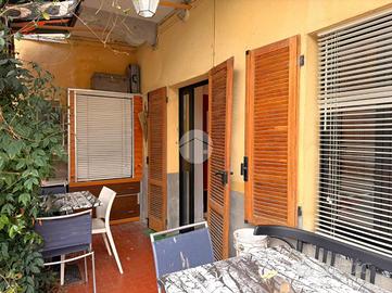 E' presente un posto auto nel cortile interno, oltre al parcheggio pubblico nelle immediate vicinanze.
