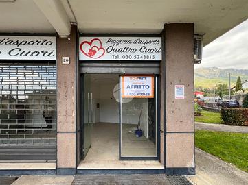 Proponiamo in locazione un locale commerciale con canna fumaria di 60mq sito a Botticino, precisamente in Via Cavour, in posizione angolare con plateatico esterno.