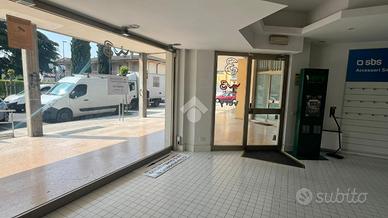 Descrizione: Precedentemente adibito a negozio Wind, il locale si presta in buone condizioni, fornito inoltre di una rampa per facilitare l'accesso a persone con disabilità. Ubicato in posizione angolare su strada di alto passaggio veicolare e pedonale, è circondato da numerose attività commerciali