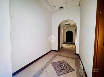 Entrando nel negozio ci accolgono due grandi ambienti divisi da tramezzatura interna, che conducono ad un grande corridoio da cui si accede alle varie stanze, in totale sei, oltre un cucinotto, ripostiglio, doppio bagno e antibagno.