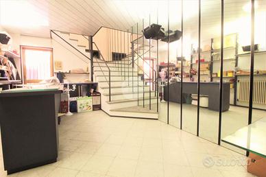 Sulla via principale di Brandizzo, in posizione centrale e di passaggio, negozio con magazzino. Il negozio, prospicente la strada, è dotato di un'ampia vetrina con ingresso ad angolo. Al piano terreno, un locale unico attualmente organizzato con un'intera parete espositiva ed un bancone. La scala interna consente di accedere al piano superiore composto da un locale unico utilizzabile come laboratorio o ufficio, dotato di servizio igienico. Il negozio data la sua posizione e la zona in cui è collocato gode di un forte passaggio pedonale e veicolare, per cui offre la possibilità di insediare un'attività commerciale o uno studio professionale.