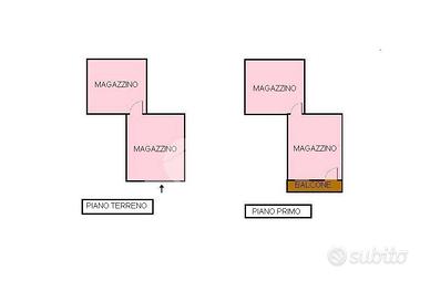 Attraversando il cortile interno è possibile raggiungere il secondo fabbricato che è stato completamente utilizzato come magazzino. Il piano terreno può essere adibito a box auto data la sua apertura carraia con un secondo locale sul retro. Tramite accesso da ballatoio è possibile raggiungere il piano superiore in cui sono presenti altre due stanze adibite a deposito. Il sottotetto può essere ulteriormente recuperato e sopraelevato per ottenere ulteriori locali sfruttabili. Il cortile comune alle abitazioni è pavimentato con autobloccanti, ed è accessibile tramite l'apposito cancello carraio dotato di apertura automatizzata. Non sono presenti spese di gestione condominiale ad eccezione di un contatore comune dell'energia elettrica utilizzata nel cortile. Ciascun fabbricato può essere acquistato separatamente a seconda delle proprie esigenze: il negozio a 65.000 € e il magazzino a 59.000 €