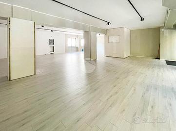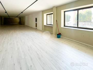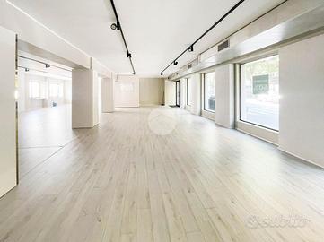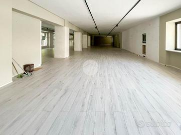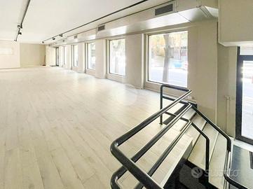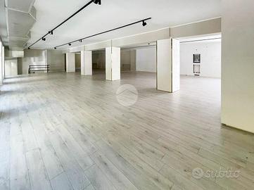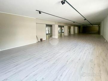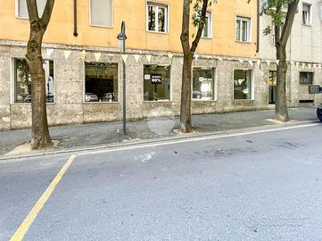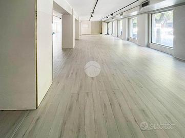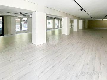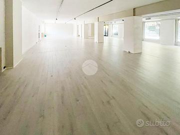 Proponiamo in locazione un locale commerciale di 370mq suddiviso su due livelli con numerose vetrine fronte strada.