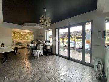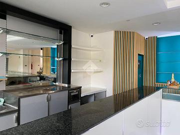 L'immobile, si sviluppa su due livelli: al piano rialzato vi è la zona commerciale di circa 140mq costituita da due locali con doppio servizio igienico, di cui uno a norma disabili, mentre al piano interrato vi sono laboratorio dotato di canna fumaria, due magazzini e servizio igienico con una superficie di circa 160mq.