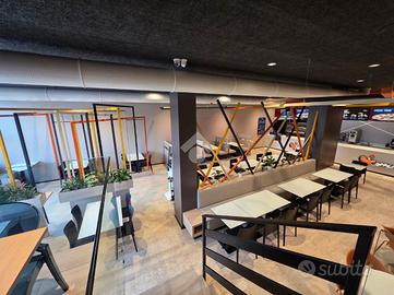 L'immobile si sviluppa in un locale di circa 200mq al piano terra e completa la soluzione un ampio magazzino di circa 150 mq al piano interrato, dove sono stati realizzati bagni e spogliatoi per il personale.