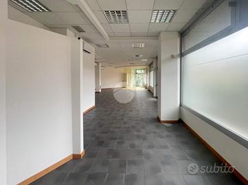 L'immobile in oggetto è ubicato al piano terra di un complesso commerciale/residenziale sviluppato su tre piani che si distingue per la posizione, in quanto è ubicato in una zona di forte passaggio veicolare e pedonale.